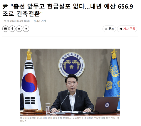 윤 대통령은 이날 용산 대통령실에서 내년도 예산안심의 국무회의를 주재하며 이같이 말했다.