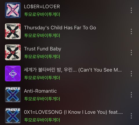 이거 ㅈㄴ 주관적인 내 의견이라 이건 왜 없고 저건 왜 들어가있냐고 따져도 할 말 없음..내가 쟤네 노래를 싹다 들어본 것도 아니고 걍 나한테 좋은거라ㅎ 좋은곡 또 있으면 추천해줘
