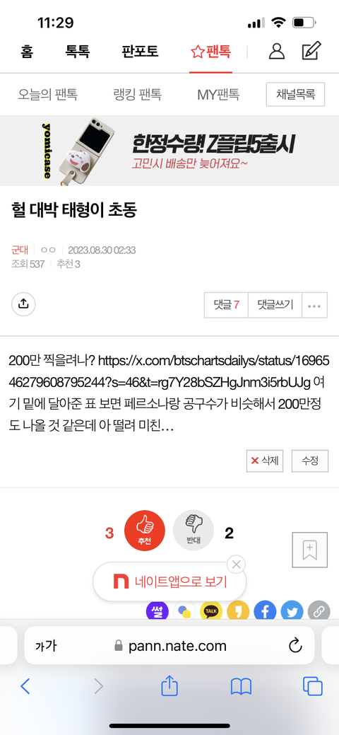 태형이 초동 글 쓴 쓰닌데…