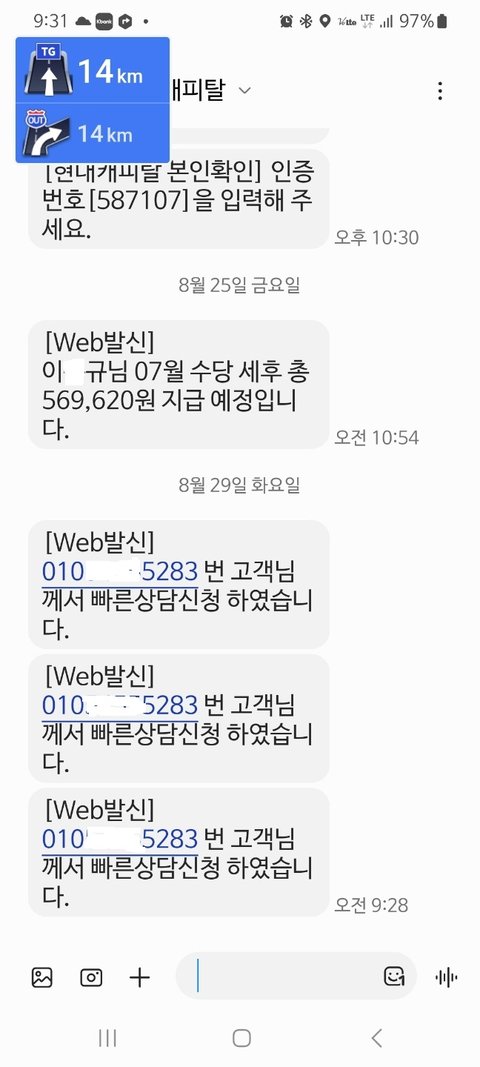 이외에도 하루에도 1000개이상의 인증번호 T월드 CJ대한통운, 통장, KG모빌리언스 외여러곳에서 인증번호 문자까지 아침,저녁가리지않고 폭풍처럼오고있는데 문자함이 ...먹통이되어버렸네요