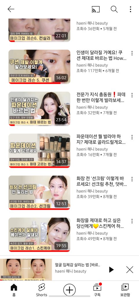 해니<<<!!!!이 사람 유튜브 진짜 조카추천함 진짜 특히 화장 기초 잘 모르는 사람이나 기술적인 부분에서 더 알고싶은 사람한테 ㅈㄴㅈㄴ 강추