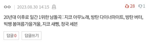 아니 일부 빅뱅팬들은 조용히 팬질 못함? 걍 니 가수 대단하다고 혼자 뽕맞으면 될 걸 왜 다른 그룹들 쳐 깎아 내리면서 나대냐 그러니까 쳐맞지 혹시 인생 최대 업적이 빅뱅 빠는거임? 그렇다면 ㅇㅈ