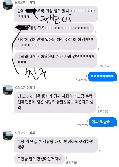 내 친구도 명문고에 스카이 수학과인데 저 캡쳐 p q 얘기 할만큼 멍청하지 않다. 어디서 주작이야