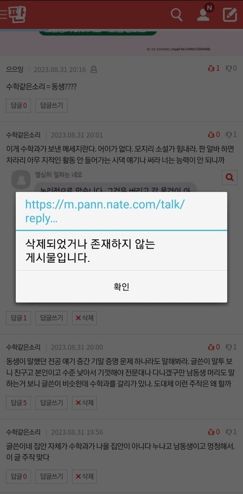 스카이 중 한 곳 수학과 단톡방에 이거 올라가고 나서
