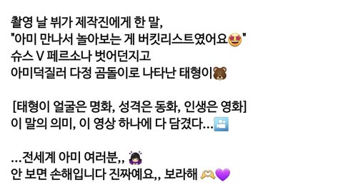 오늘 뷔 딩고 스토리에 출연했는데 제작진 피셜 뷔가 아미랑 놀아보는게 버킷리스트였대