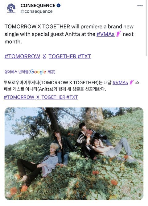 추반) VMA(9월 13일 오전 9시)에서 곧 컴백하는 투바투 앨범 수록곡 선공개해 만관부❤️