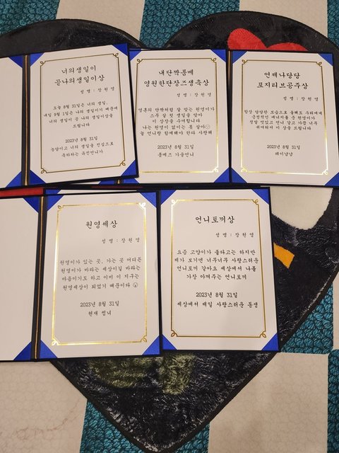 각자 성격 보이는 상장 ㅋㅋㅋㅋㅋㅋㅋ ㄱㅇㅇ