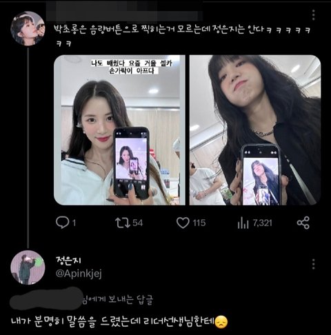 음량 버튼으로 찍을 줄 모르고 힘들게 손가락으로 찍은 박초롱