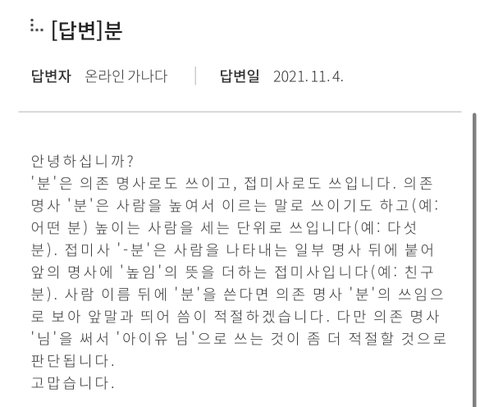 사람 이름 뒤에 분 붙이는 거 아닌데