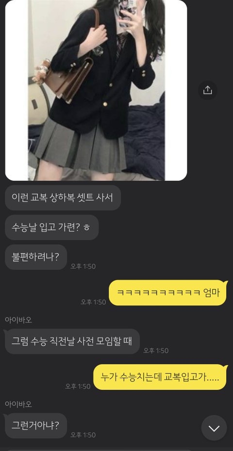 나 자퇴하고 수능준비하는데, 수능날 혼자 교복안입고 가서 소외감들까봐 교복사주려고 함ㅋㅋㅋㅋ