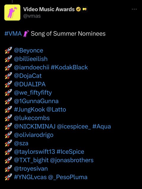 정국 VMAs 후보 든 부문