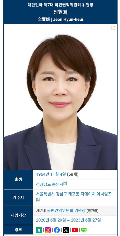 (사진8 설명) 전현희(全賢姬, Jeon Hyun-heui) 전 국민권익위원장 <출처 : 네이버 나무위키>
