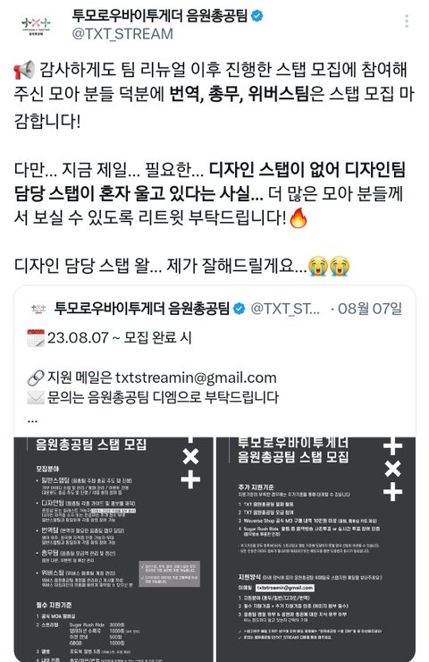 디자인팀도 잘 구해지면 좋겠다 음총팀 늘 사랑합니다❤️