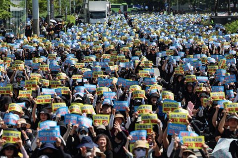 이날 집회는 서이초 교사의 사망 직후 토요일인 지난달 22일부터 시작돼 7주째 이어지고 있다. 특히 전날 경기 고양시와 전북 군산시에서 초등교사가 또다시 극단적 선택을 하는 사건이 발생하면서 추모 열기가 전국으로 확산한 것으로 풀이된다.