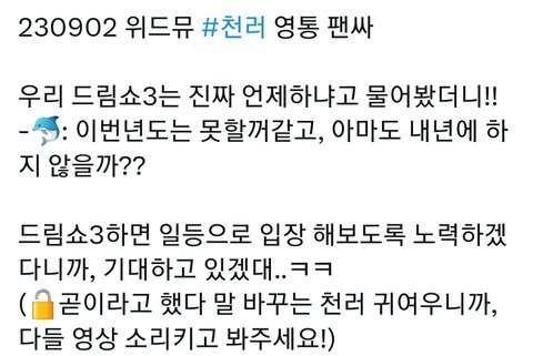 드림쇼3 빨리 보고 싶다..