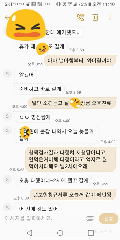 혈관을 못 찾아 이곳 저곳 찾다 바늘로 찔렀는데도 울 힘도 없어서....여튼 저 순간 애한테 무슨일 생길까봐.... 애아빠한테 문자보낸 내용입니다.