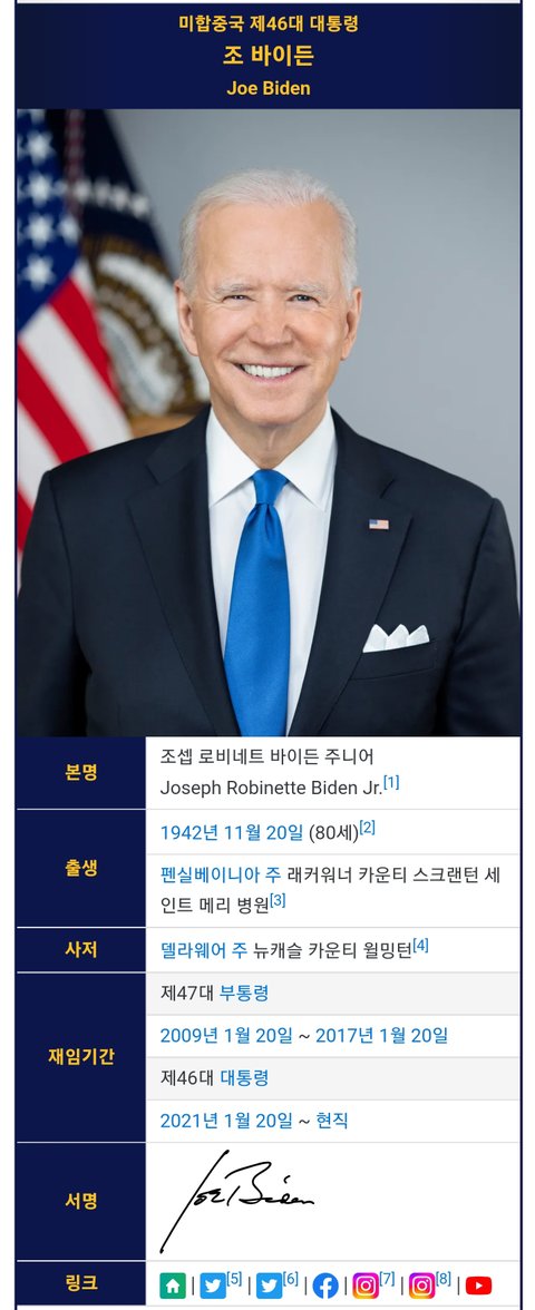 (사진1 설명) 조셉 로비네트 바이든 주니어(Joseph Robinette Biden Jr) 미국(United States of America, USA) 대통령 <출처 : 네이버 나무위키>