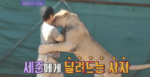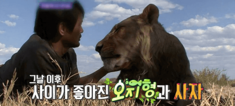 동물농장 출연 당시 사육사와 함게 사자 우리에 들어갔다가