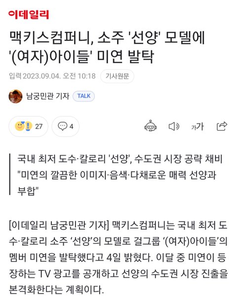 미연 언제 한 번 소주 모델 할 것 같다 싶었는데 진짜로 하네…. 근데 그럴만한 얼굴임