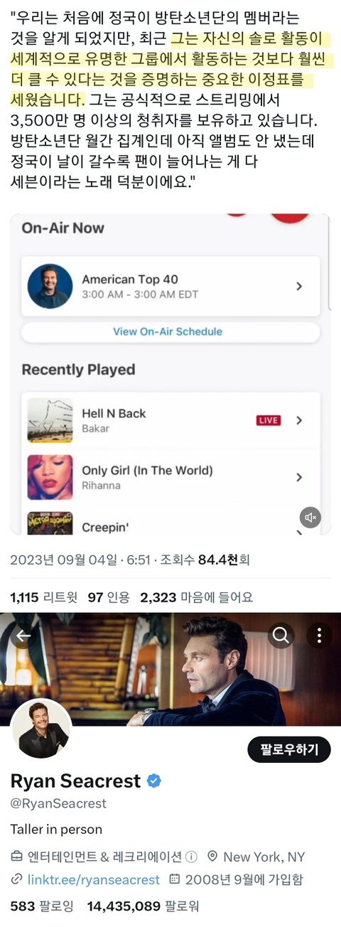 더 대단한건 스포티파이 차트는 어제부로 50일째 전세계 1위중
