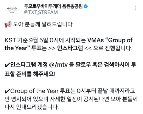 VMAs 투표 참고! 중요!