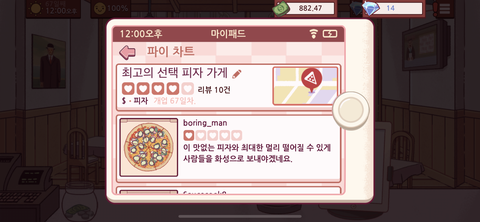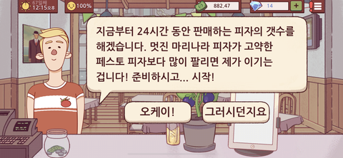 바다 밑에 들어가서 파인애플 피자 먹을거라고 주문 들어와서 파인애플 피자 만들어줬더니만 멸치가 부족하다고 3.14달러 뺏어감… 하…ㅋ 피자사업 쉽지 않네..