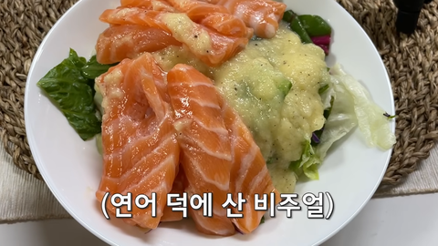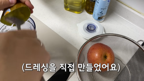 키위랑 사과 갈아서 소스 만들어서 연어 샐러드 해먹고
