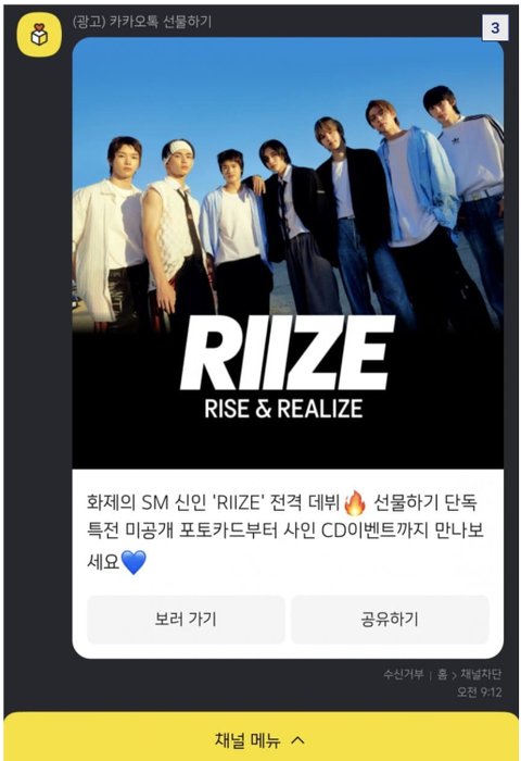 라이즈랑 아이브앨범 카톡 선물하기 프로모션 하네