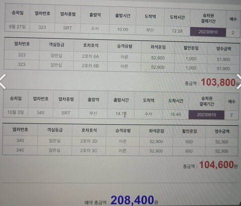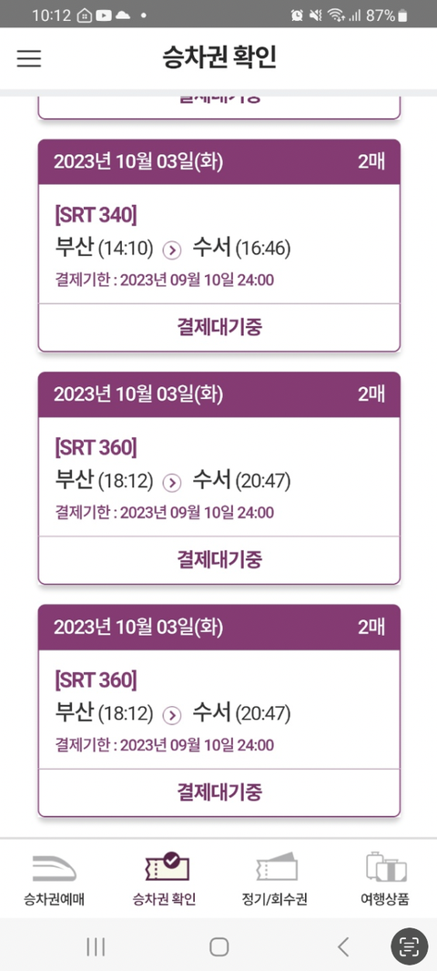 진짜 예약이 된건가 싶어 다른시간대로 또 한번 해보고, 최종적으로 어플에서 승차권까지 확인되는것까지 보고,