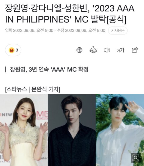 aaa시상식 엠씨 장원영,성한빈,강다니엘 확정