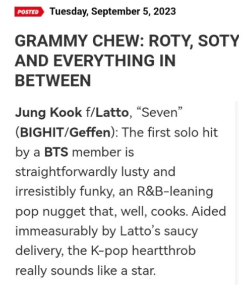 미국 음악산업 전문지에서 다음 그래미 후보 유력한 경쟁자 중 하나로 세븐 언급했다는데…?? 이중에 하나 예상한다는데 찐일까