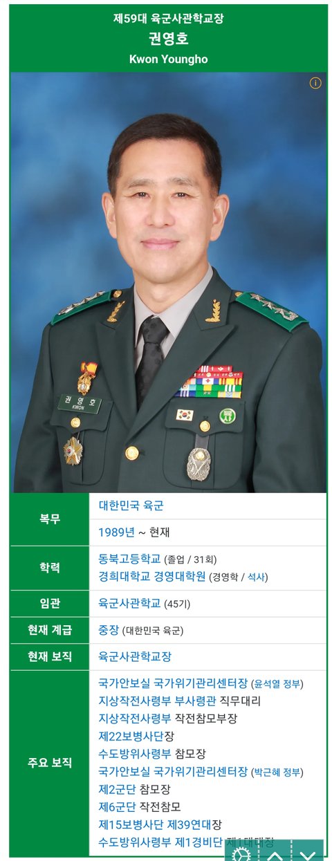 (사진1 설명) 권영호(Kwon Youngho) 육군사관학교장 <출처 : 네이버 나무위키>
