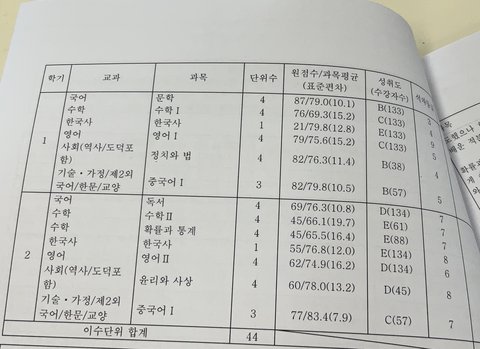 고등학교 들어와서 좀 힘들었어서 3년 내내 공부 한 번도 안 함