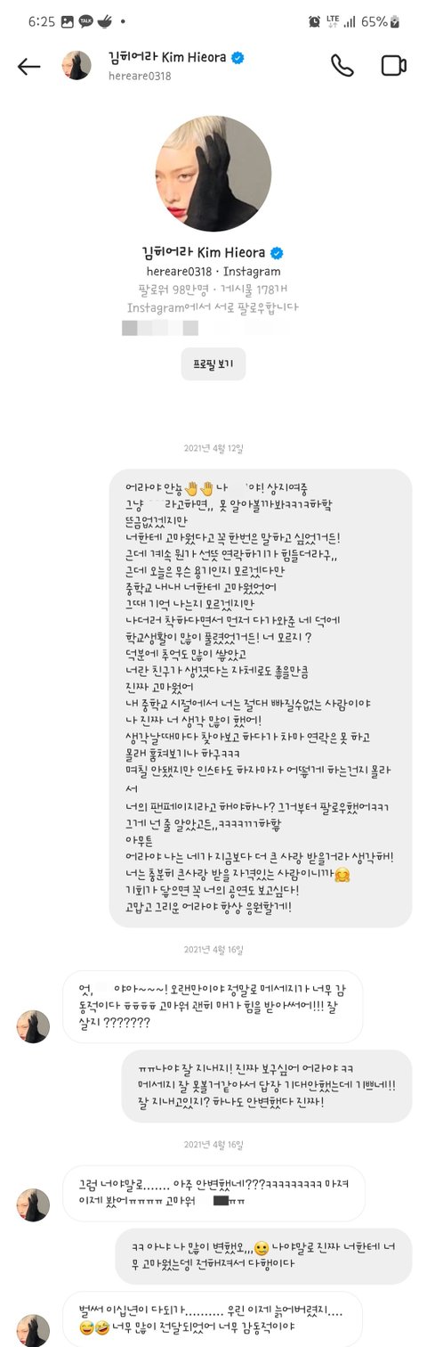 그러다 드라마 괴물에 나온 어라를 보고선 더 늦기전에 고맙단 말을 해야할것같아서 용기내서 디엠도 보냈습니다. 너무 바쁜거같아 답장은 바라지도 않았는데 고맙다며 시간나면 공연보러오라며, 보고싶다는 어라를보며 여전하다고 느꼈습니다