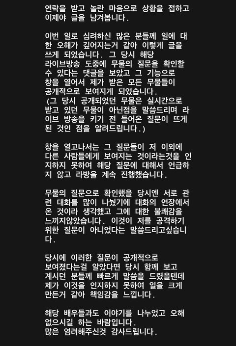 먼저 이건 정우연배우님 인스타에 올라온 입장문이야.