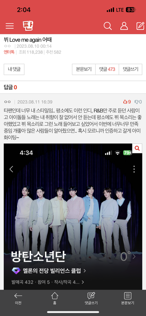 댓글 많은 톡