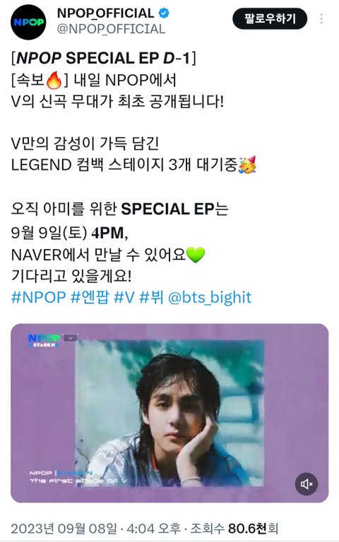 내일 엔팝에 방탄 뷔 나오는데 스포