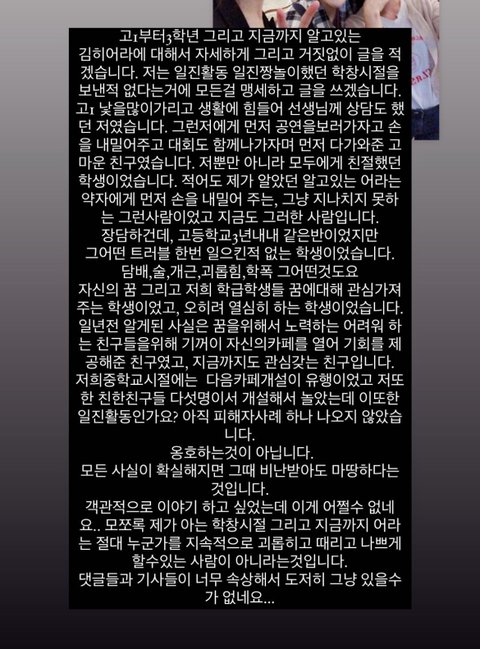 김히어라 중1~ 고3 동창들이 인스타로 올리고 있는 글