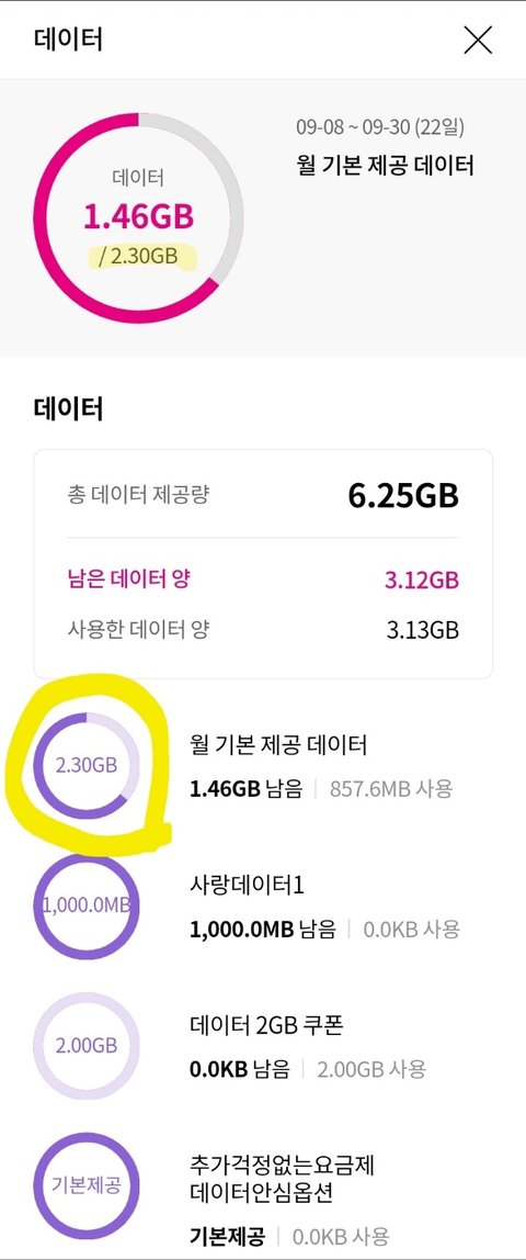 이번에 요금제 바꾸려고 조회를 해봤는데 해당 요금제 데이터 제공양이 2.5G네요.
