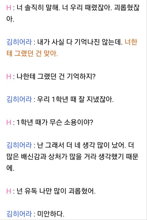 김히어라 학폭 아니라던 동창들 싹 나와봐라
