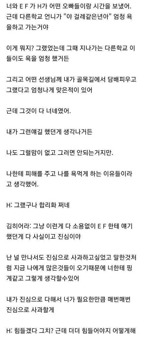 김히어라 학폭 제보자가 __고 담배핀다고 소문냄