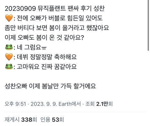 성찬 오늘 팬싸 내용인데 눈물남
