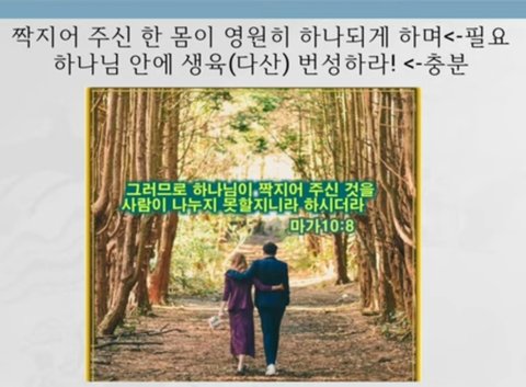 또 반복을 합니다. 물론 처움부터 하나님 짝지어 주신 커플이 대부분이지만 성경적으로 이혼하고 재혼해야하는 짝이 아닌 남녀가 있다고요