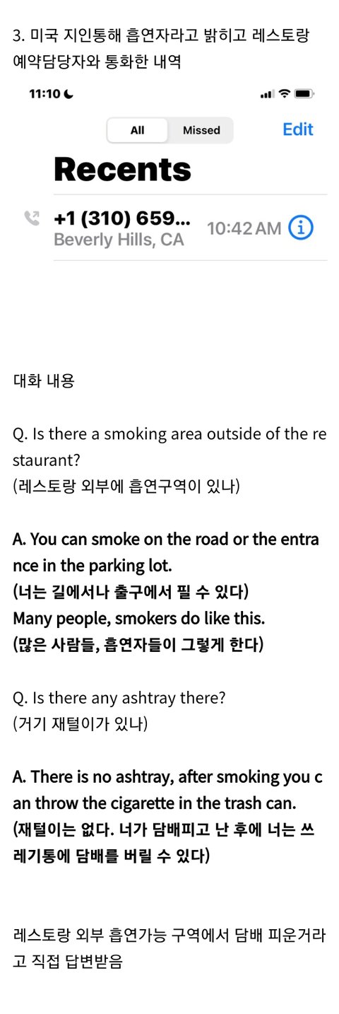 정국 흡연구역에서 핀거래(식당 피셜)