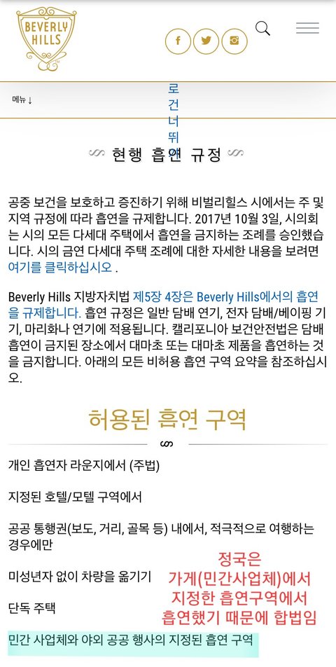 까들이 계속 날조하는 캘리포니아 금연법도 비버리 힐즈내 금연법하고 전혀 상관없음