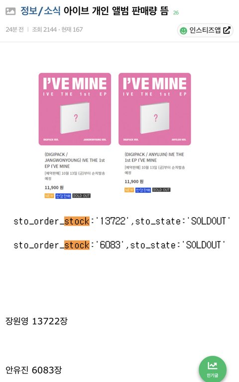 저 지표가 무의미한 이유- 장원영은 1차 품절되고 다시 물량풀림, 안유진은 1차 품절되고 다시 물량 안풀림 그이후 장원영 2차 품절 // 안유진도 품절풀어줬으면 저것보다 많이 팔았을거임 // 아이브 멤버는 6명인데 왜 2명만 비교하고선 인기없다 ㅇㅈㄹ하는지 모를