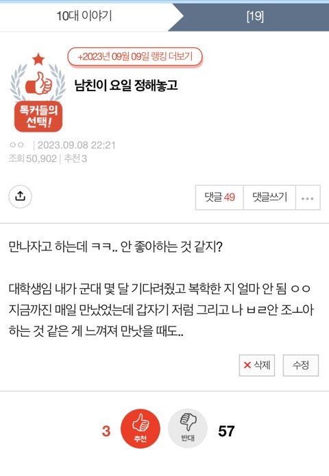 그리고 내 글의 요지는 ‘요일 정해서 만나는 것’ 이 좀 그렇다였는데 왜 너네는 ‘매일 만나는 것’에 꽂힌거니?...