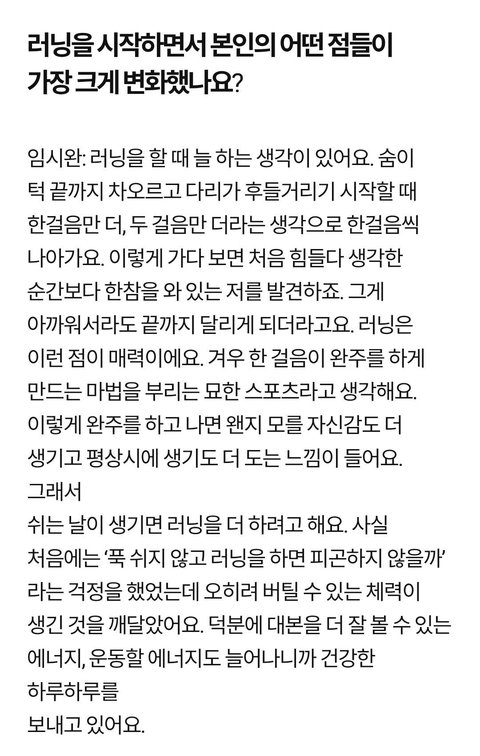 일로 시작해서 러닝이 취미가 된 좋은 예