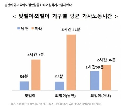 남편 외벌이면 대대분 가사노동을 여자가 함.