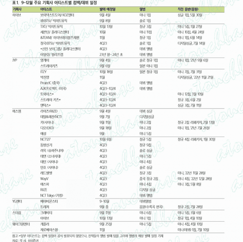 하이브, SM, JYP, YG, 스타쉽(카카오), 웨이크원 (CJ)